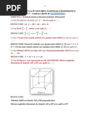 Subiect Propus La Evaluarea Națională Matematică 2015 Varianta 7 Rezolvare Oferită De