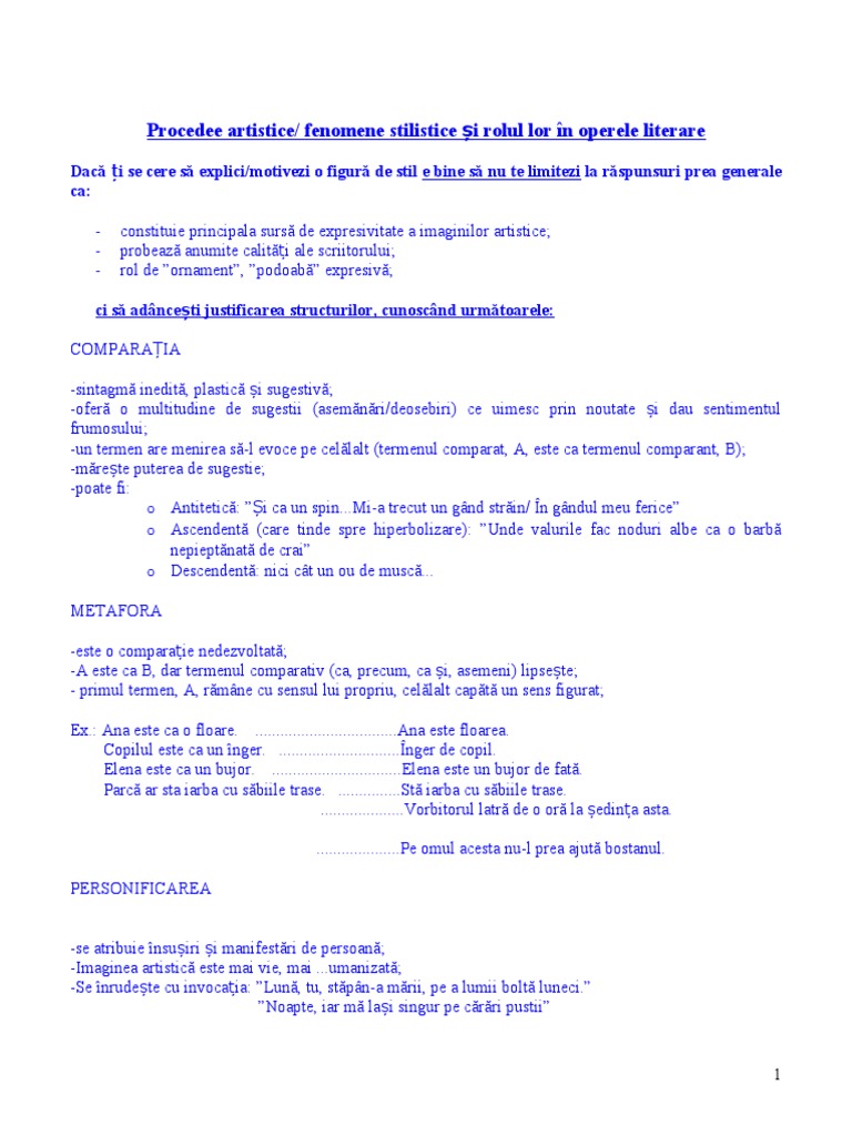 Procedee Artistice Si Rolul Lor In Opere Pdf Document