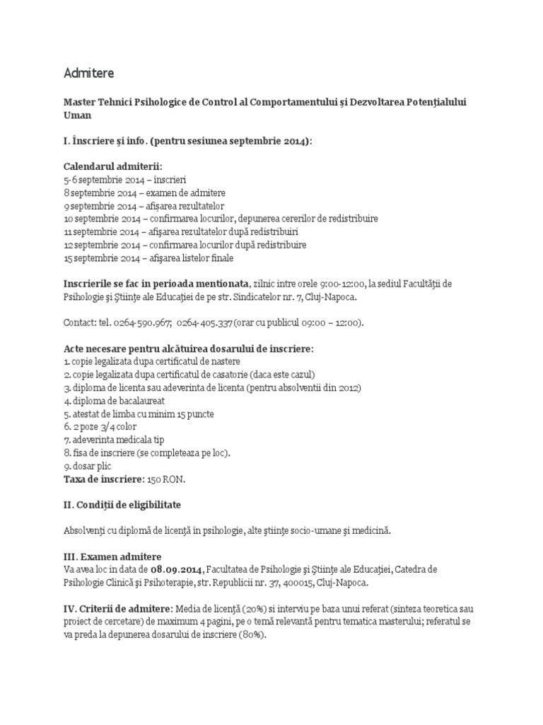 Admitere Facultatea De Psihologie și științele Educației