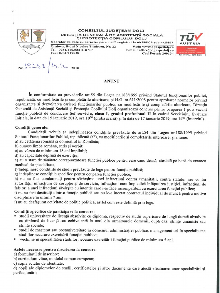 Anunt Concurs Functie Publica De Conducere 15 17 Ianuarie 2019
